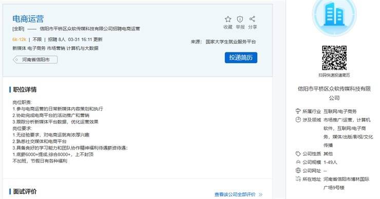 招聘单位:信阳市平桥区众软传媒科技有限公司